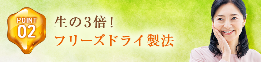 | 製法 | アスタキサンチンで酸化を防ぐ、栄養を損なわないフリーズドライ製法 |